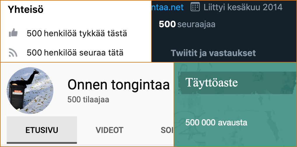 Käännökset: ”onnen tongintaa” – ”tongue of happiness”; ”Onnen tongintaa” – ”Good luck tonging”.